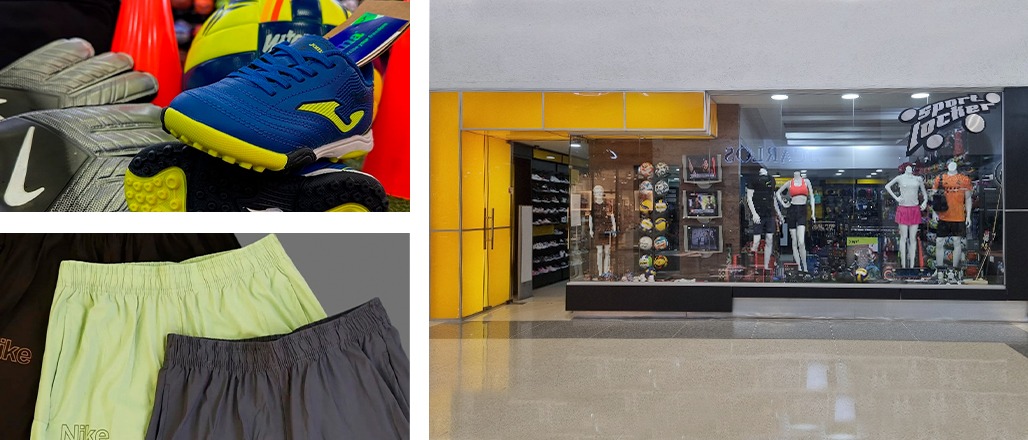 Todo en vestimenta y accesorios deportivos para damas, caballeros y niños. Local comercial 20E-21E.